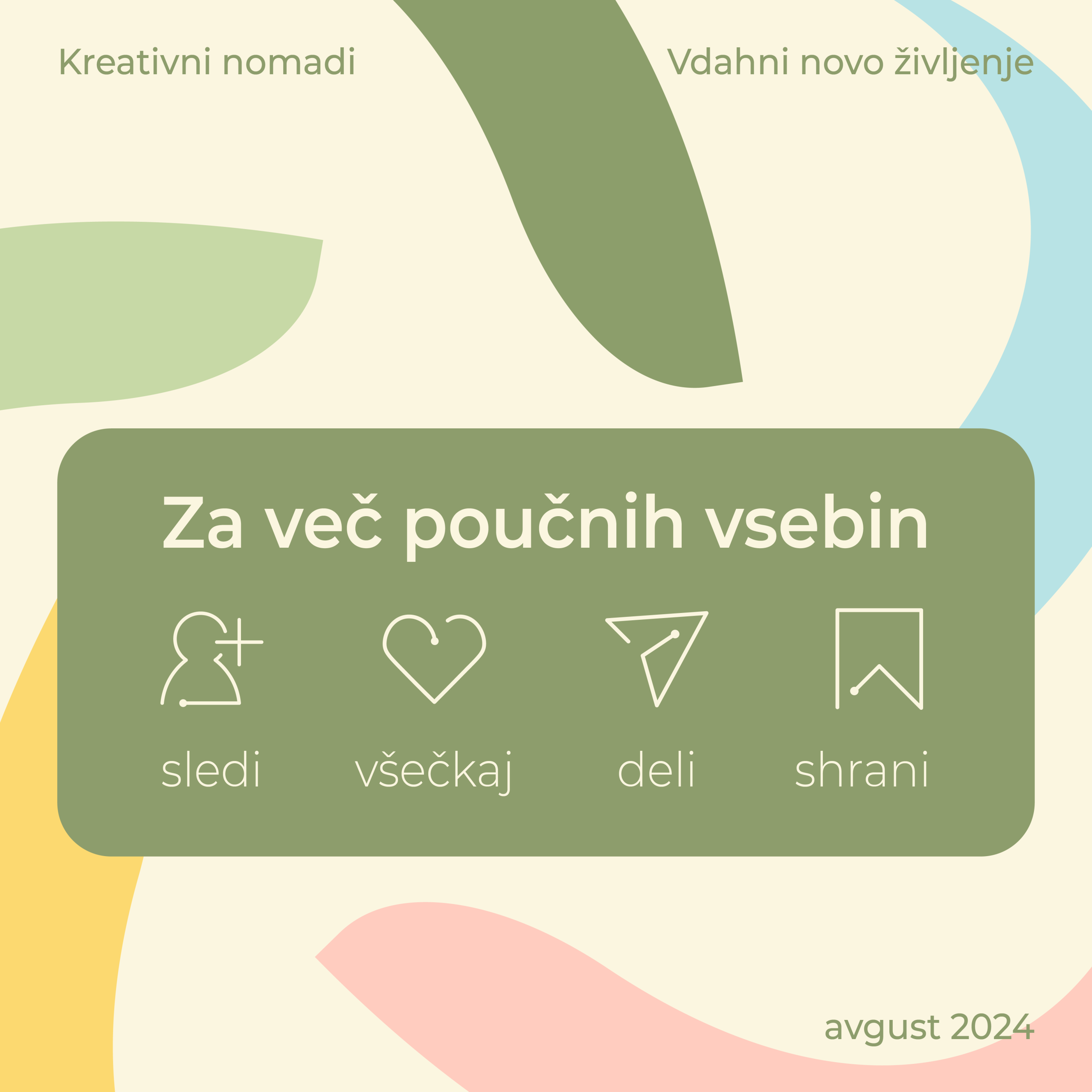 Društvo Kreativni Nomadi is a Slovenian non-governmental organization dedicated to promoting creativity, environmental awareness, and sustainable living. Through hands-on workshops, community events, and educational activities, the organization encourages people of all ages to explore innovative ways of reusing materials and reducing waste.