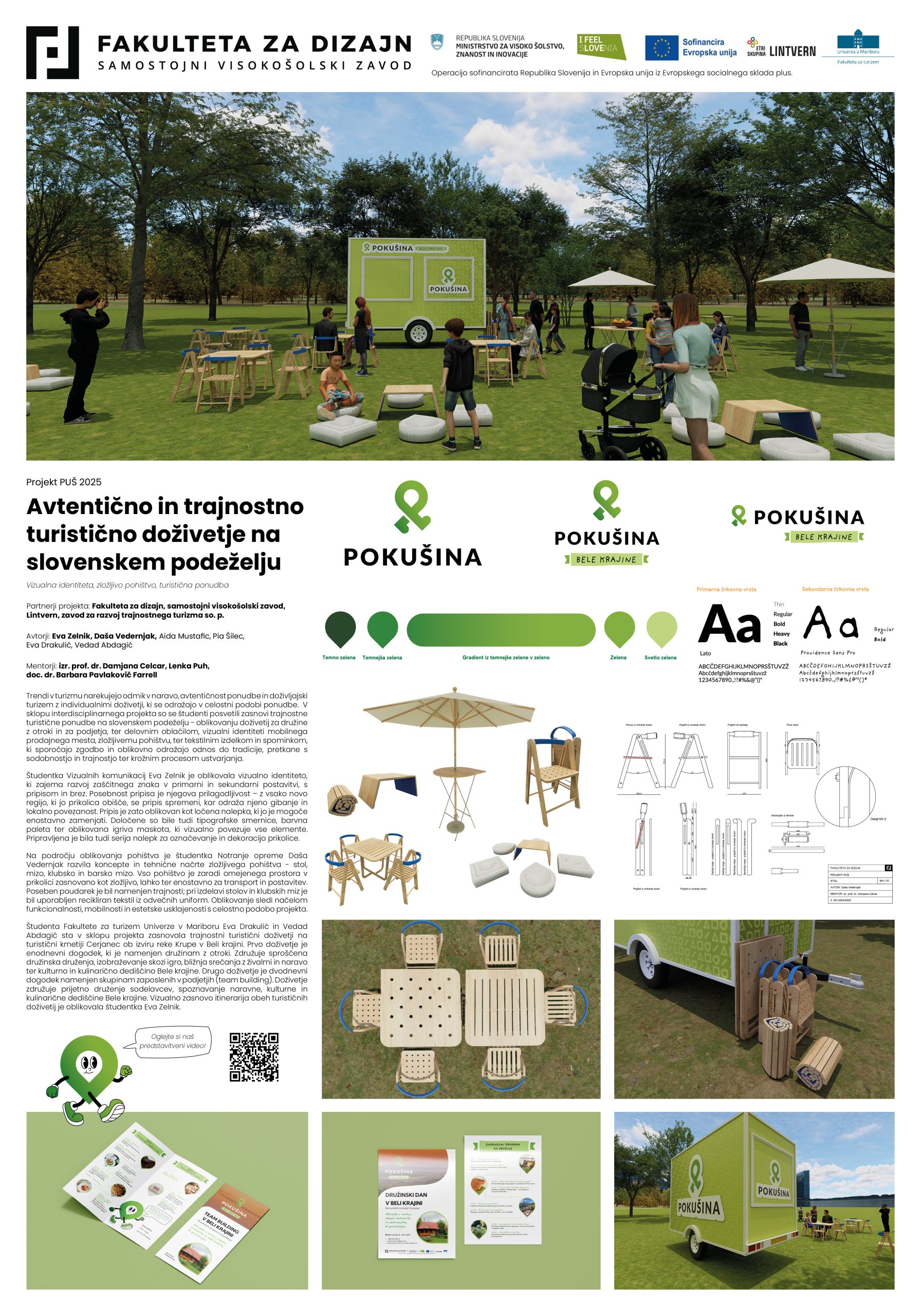 The project entitled Authentic and Sustainable Tourism Experience in the Slovenian Countryside was created as part of the call for proposals Problem-Based Learning of Students in the Work Environment and was designed and implemented by students and mentors at the Faculty of Design in 2025.
