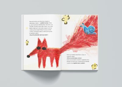 The book Slovenian Fables and Animal Tales is designed to get closer to children’s perception of the world through illustrations inspired by children’s drawings and scribbles. Both the illustrations and the overall design of the book stimulate children’s imagination and creativity. The book combines simplicity and playfulness, where children can identify with the illustrations and thus better understand the stories.