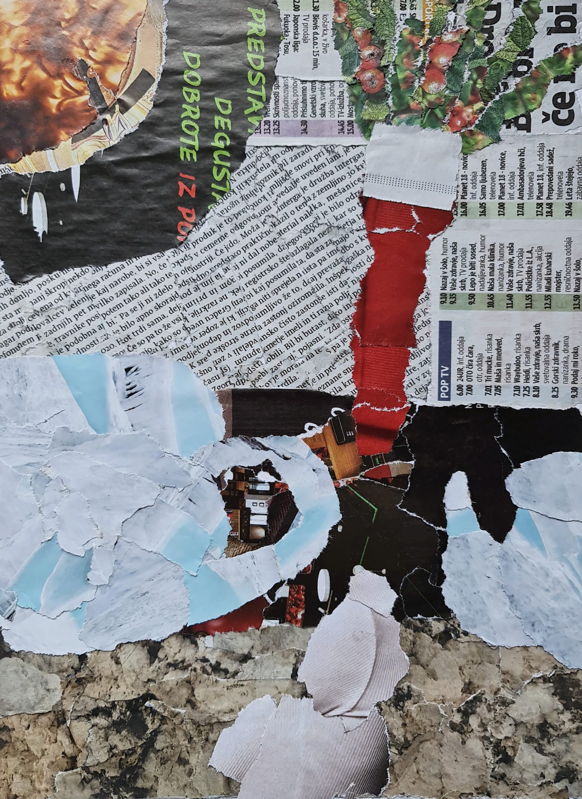 Later on, I embraced more imaginative and free-form compositions. As the project developed, I ventured into abstract interpretations using collage techniques, incorporating black and white artistic elements, colorful patterns, and diverse textures.